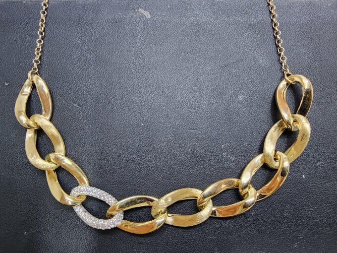 שרשרת זהב חוליות שטוחות בשילוב אבני זרקון